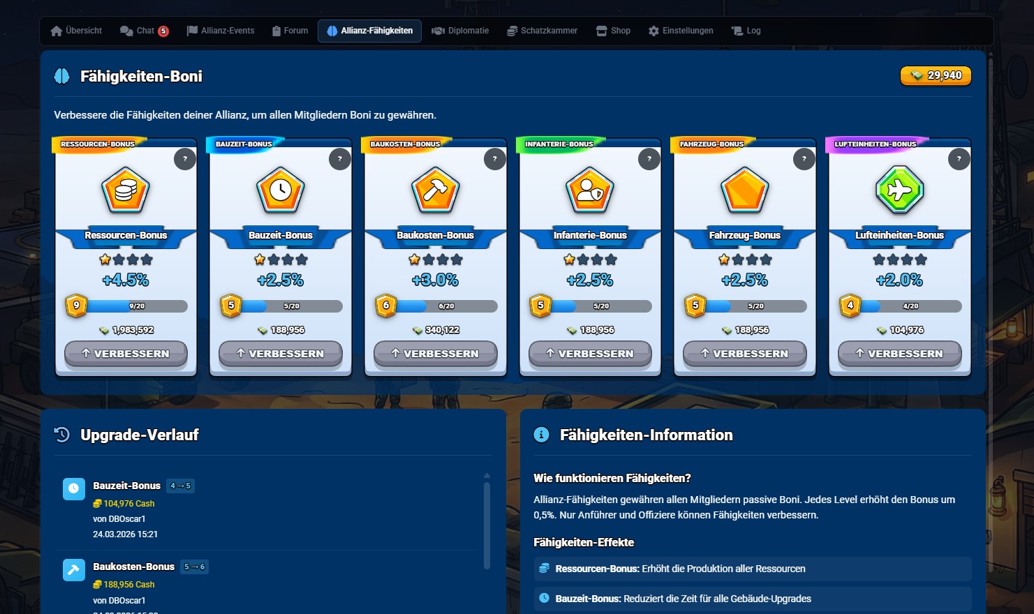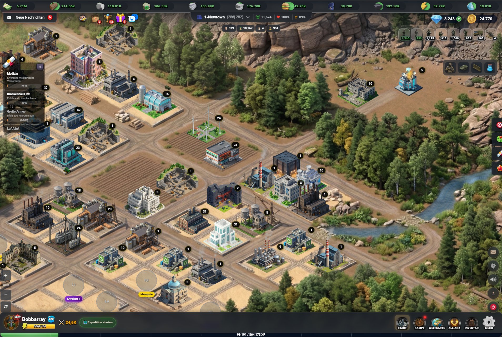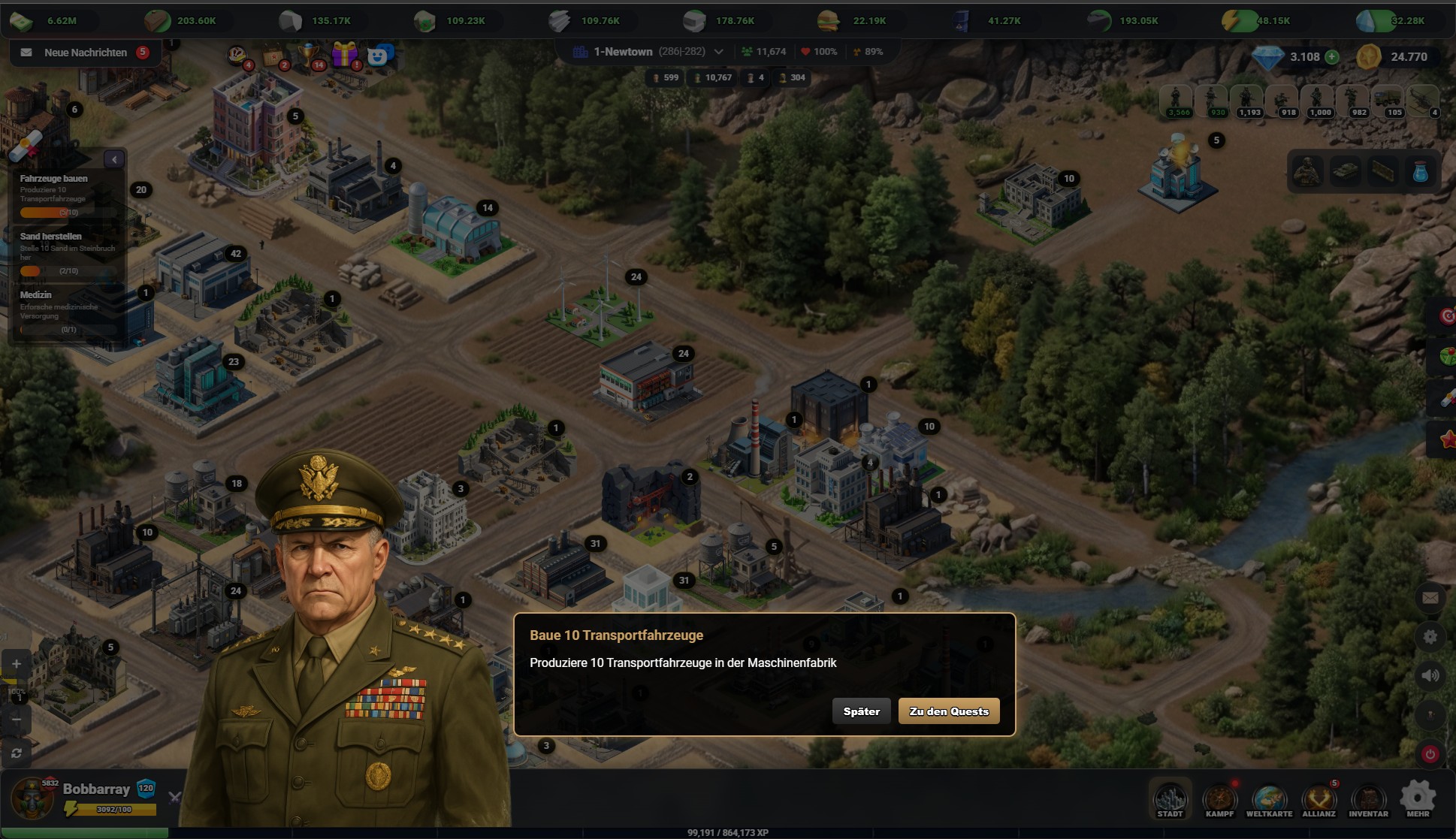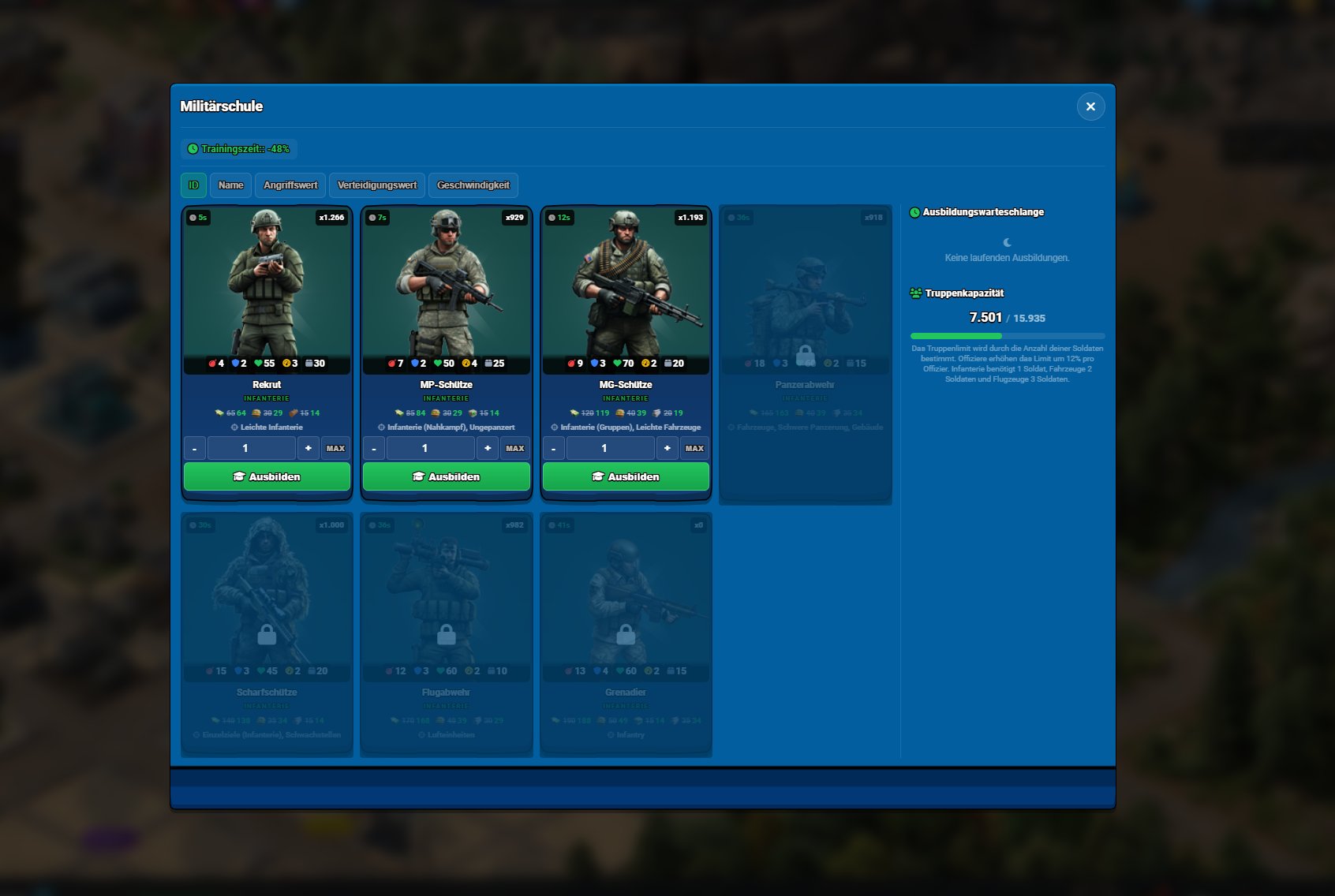 In CityConflict übernimmst du die Rolle eines Commanders und baust dein Imperium von Grund auf. Errichte über 50 verschiedene Gebäude, erforsche mehr als 100 Technologien und rekrutiere mächtige Armeen. Schließe dich mit anderen Spielern zu Allianzen zusammen, betreibe Handel auf dem globalen Markt und kämpfe in weltweiten Events um Ruhm und Reichtum. Das Spiel ist sowohl im Browser als auch als Android-App verfügbar und komplett kostenlos spielbar - ohne Pay-to-Win.